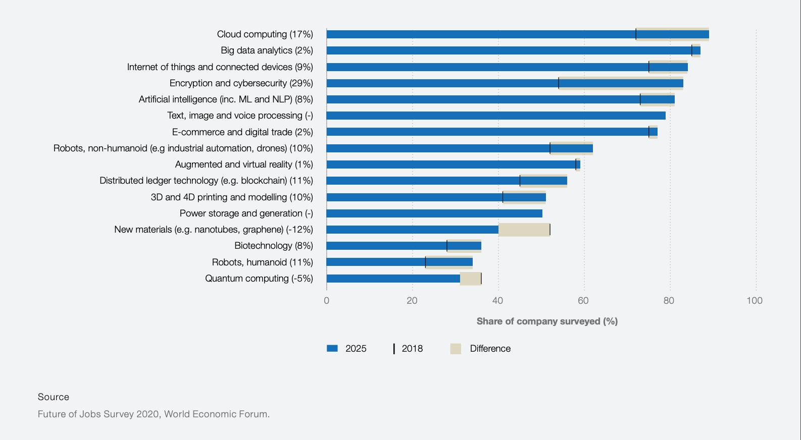 Graph: ​​Technologies likely to be adopted by 2025