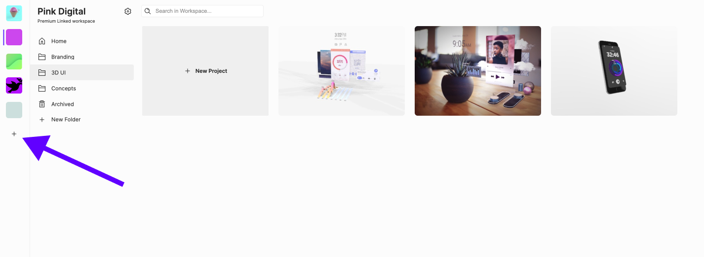 Workspaces are accessible on your Dashboard under your profile image. You can easily add a new workspace by clicking on the ‘plus’ icon. The list will showcase all the available workspaces for your account.