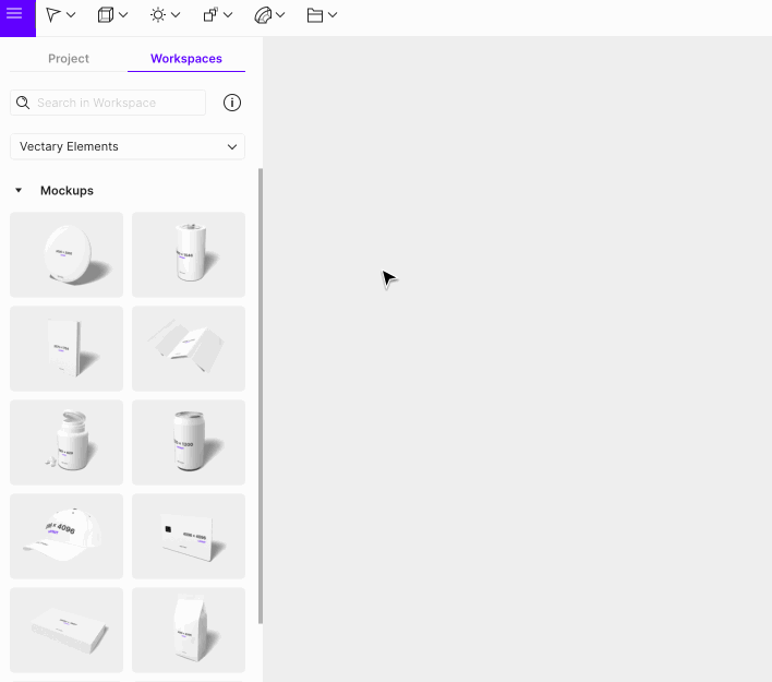 In the list of available workspaces, you will always find Vectary Elements. It is a library of assets created by Vectary. You can select and use any of the objects provided in building up your scene. Each object can be customized by changing materials, colors, and overall shape. Check back regularly as we will be adding more elements to the library every month.