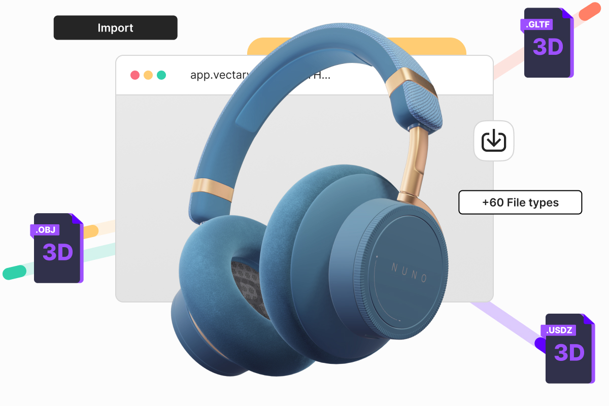 View, zoom and rotate a realistic 3D composition in your desktop browser and seamlessly transition to mobile AR.