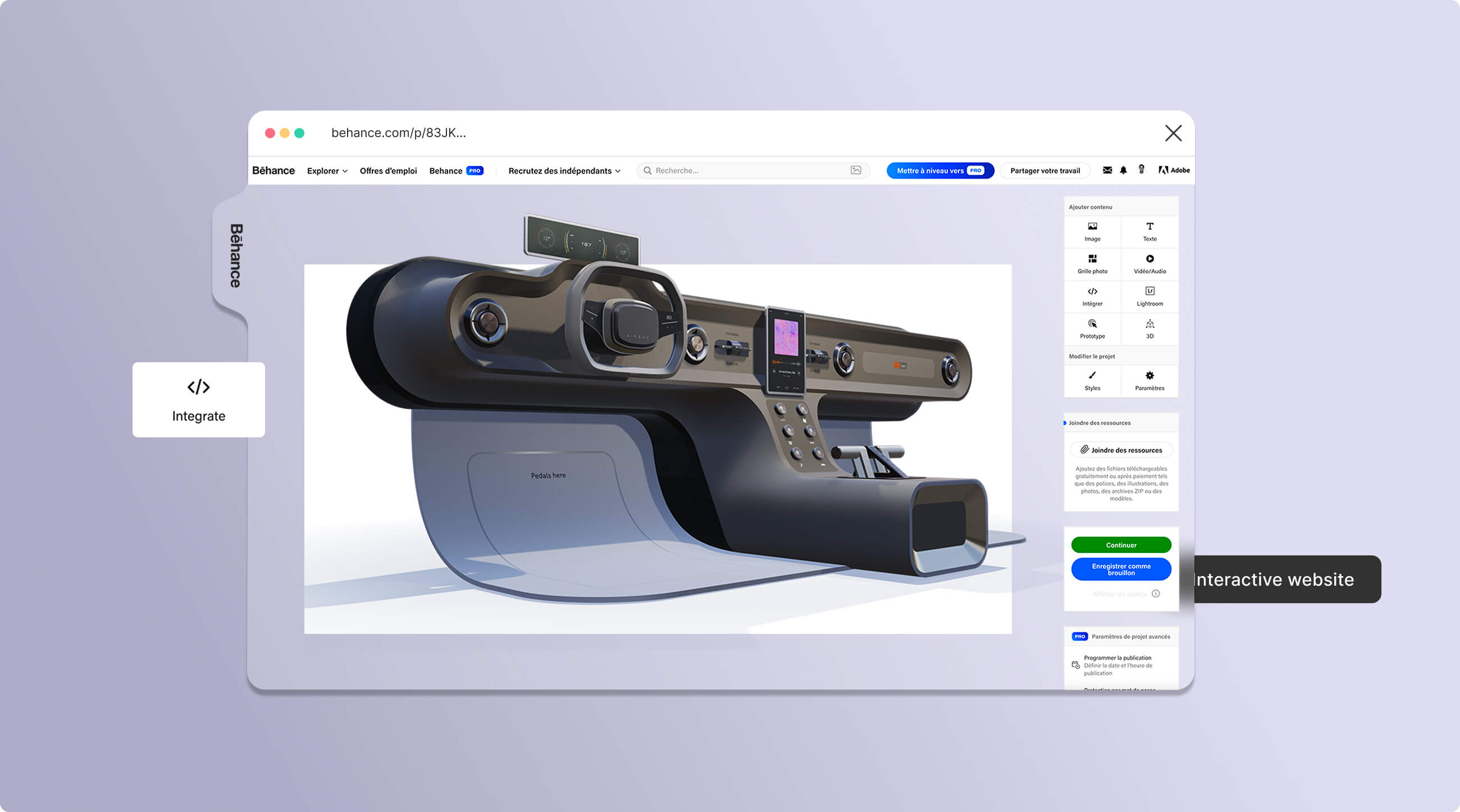 Embedding a 3D viewer makes your portfolio more interactive and engaging, by letting visitors explore designs from every angle in 3D.
