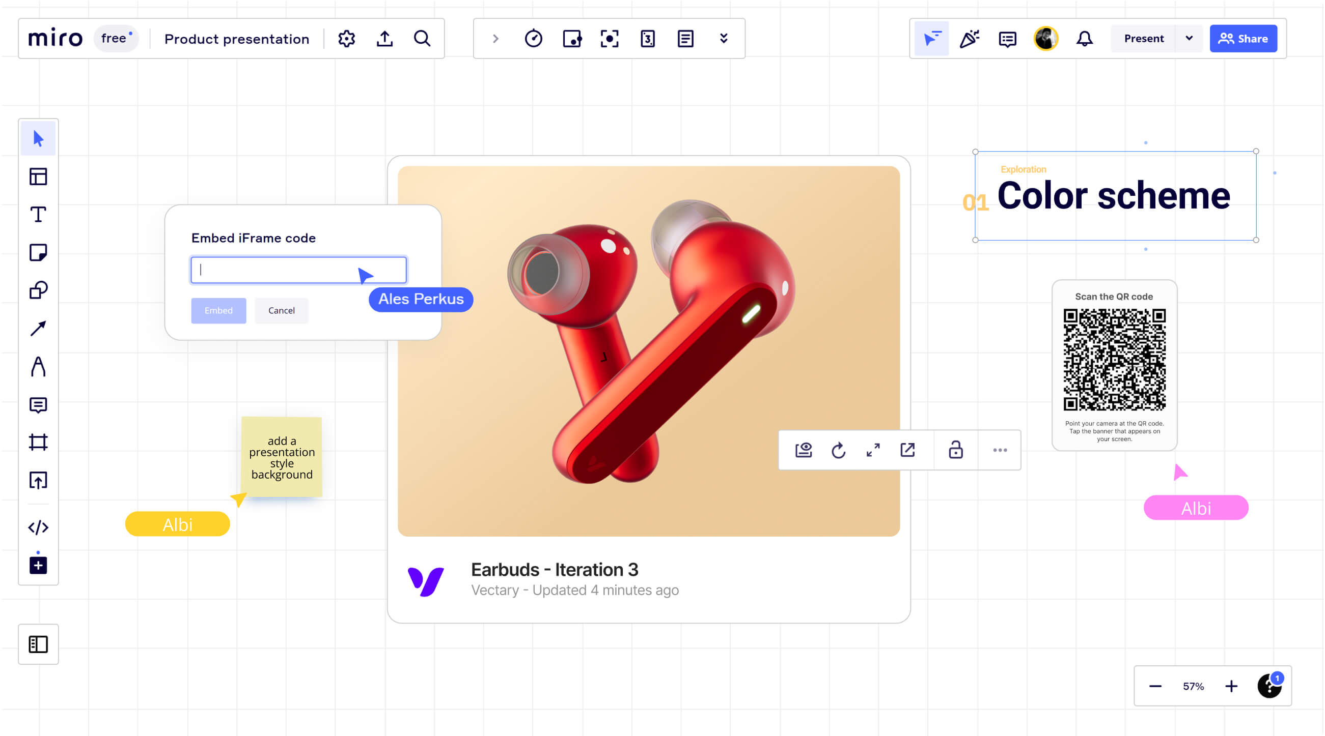 No-code, no apps, just innovation. An easy step from digital to virtual. Paste the QR code from your Vectary design to Miro.