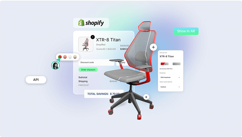Product displays with customization options that can be embedded into an e-store for direct engagment.